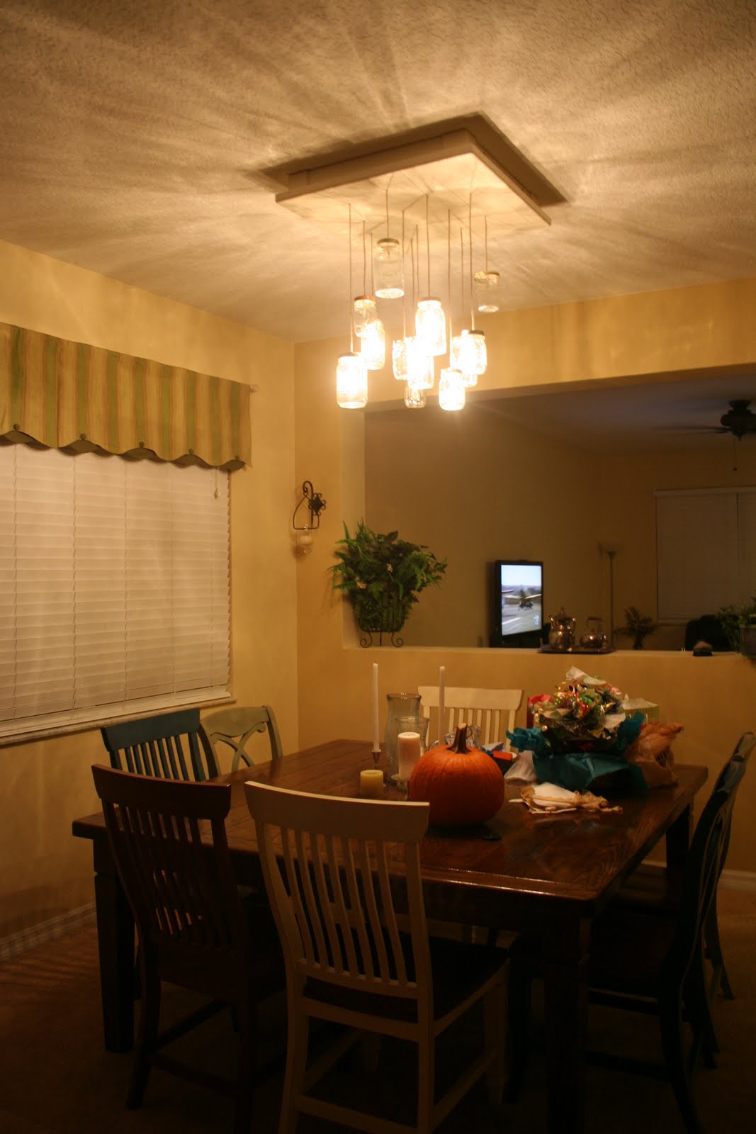 I know you are waiting for photos of my sisters wedding but it will have to wait a bit longer...i don't have them yet =( They are on their honeymoon and i miss her more than i could say! She was a beautiful bride and it was a gorgeous day! Until then, i wanted to show you my new dining room light fixture that two of the talented men in my life have made for me. I designed the light and Matt and his dad made it happen...Its so pretty!